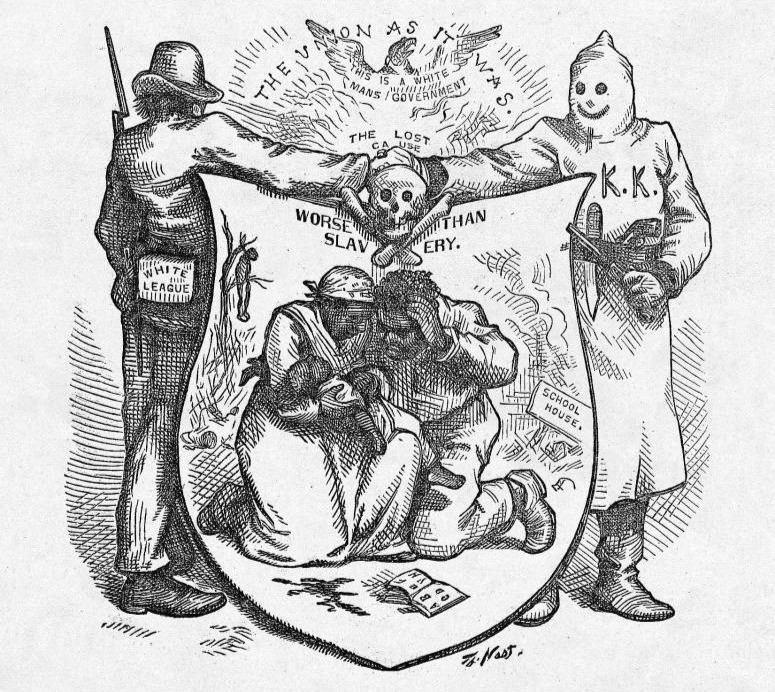 But as the next 12 years would show, the War for Southern Society had only just begun. During Reconstruction (1865-1877), Black freedmen and Radical Republicans strove to break up the racist social hierarchy of the Confederacy and guarantee the full freedoms of the Constitution to former enslaved persons. But intransigent white Southerners fought them every step of the way, determined to preserve white supremacy by any means necessary.