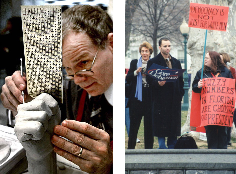 Like flies to honey, partisan attorneys swarmed the state. Democratic lawyers demanded a recount; Republican lawyers cried foul. Central to the dispute were the punch-card ballots used by some Florida counties. Voters were supposed to punch a hole through the ballot to designate their preferred candidate, but some ballots were only partially punctured, leaving “hanging chads” that complicated the recount process. Democrats suspected partisan chicanery; Jeb Bush, brother of George W., was the governor of Florida, and the Florida Secretary of State—the official in charge of certifying the election results—was the co-chair of Bush’s Florida campaign.