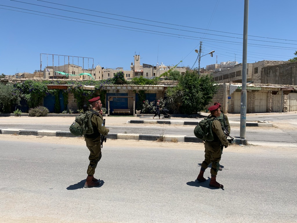Settlers sometimes throw things or shout at groups like ours visiting the city, so a group of IDF soldiers was assigned to escort us.