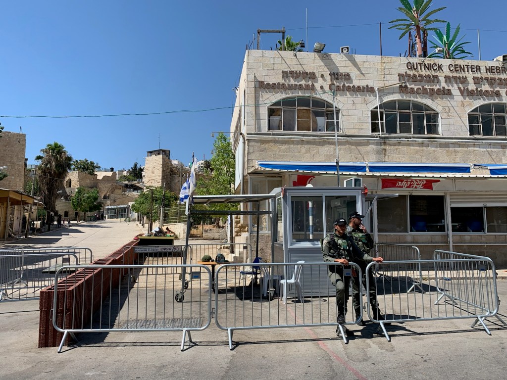 The entry to Hebron—visitors have to show their documents to the military and go through a metal gate.