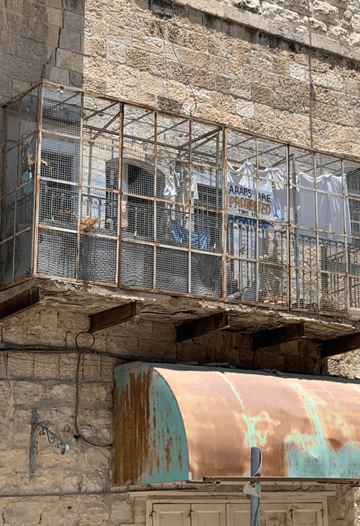 Palestinians living on the restricted roads can’t exit their houses through the front door. Cages are installed on their balconies to prevent them from accessing the “forbidden” streets.