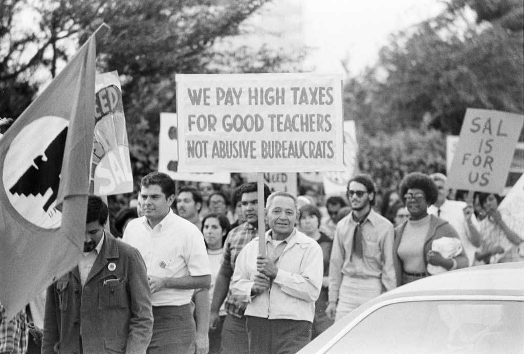 The walkouts in March 1968 included some 15,000 Mexican-American high school students from five high schools in East Los Angeles. While staff hid, students stood on desks, banged on lockers, and flooded the streets with protest signs that read “we want education, not eradication,” “Better Education,” and “Unite for Better Schools!” They took to nearby parks to share impassioned speeches on education equality. Police appeared on the scene; the college students fulfilled their promise of acting as bodyguards. Students refused to disband. Luis Torres, a student participant, remembered “brainiacs, jocks, cheerleaders, nerds, and gangbangers, all marching together.”