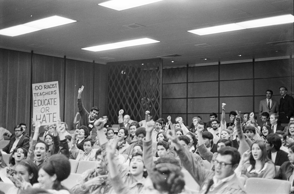 During the 1967-1968 school year, Vicky Castro and Paula Crisostomo, two Mexican-American high school students in East Los Angeles, presented a list of demands to the Los Angeles School Board. For weeks, they and other student leaders had been raising political awareness among the student body regarding racist educational inequalities they faced in their schools. They wrote underground newspapers bursting with Chicano pride and created a survey to gather Mexican-American students’ concerns about school conditions. Several hundred students responded and the results “went from wanting better food all the way up to, you know, ‘we want to go to college.’” The School Board never even considered the demands; they threw out the surveys because they did “not have the authority to control what the whole of society was doing.”